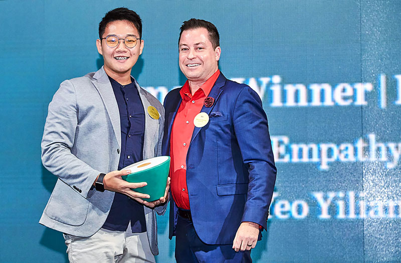 Yeo Yiliang accepting his trophy, presented by Kristian Missen of Schiavello, at the INDE.Awards Gala.