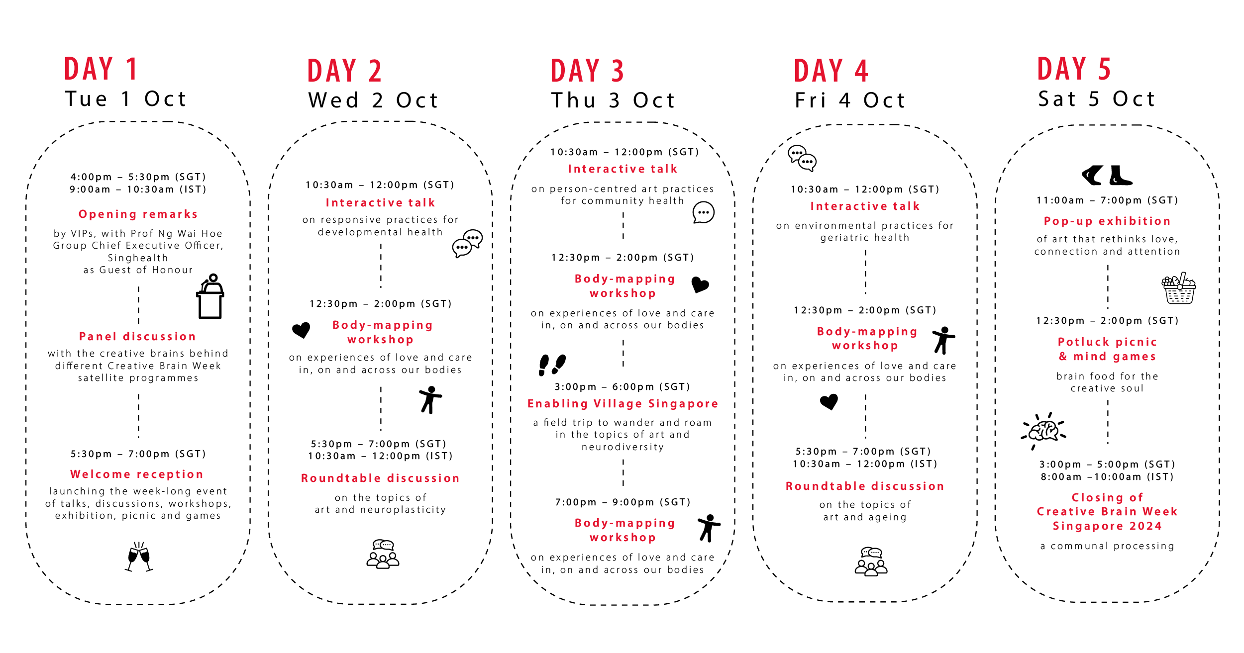 Creative Brain Week Singapore 2024 takes place at LASALLE College of the Arts from 1 to 5 October, with a field trip to Enabling Village on 3 October.