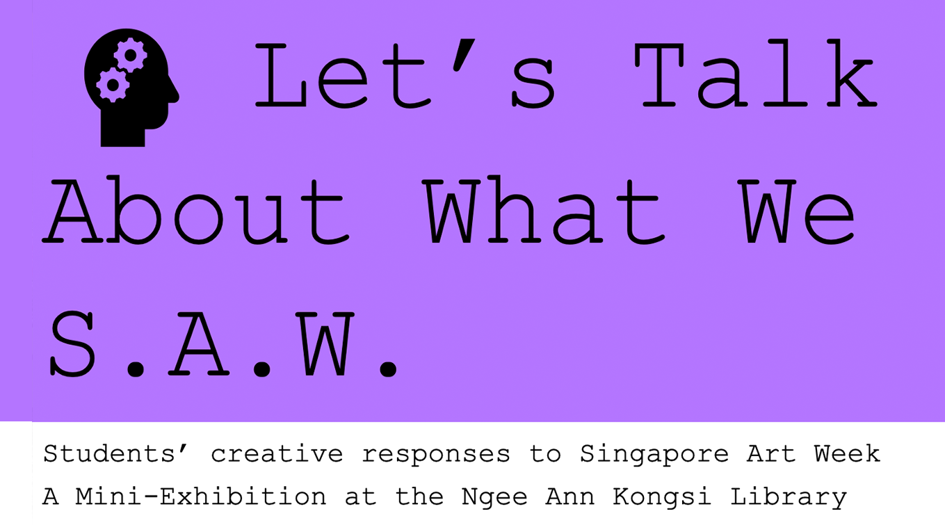 In February, students were invited to submit creative responses through an open call. This culminant mini exhibit at the Ngee Ann Kongsi Library showcases students’ works and invites viewers to share their own responses.