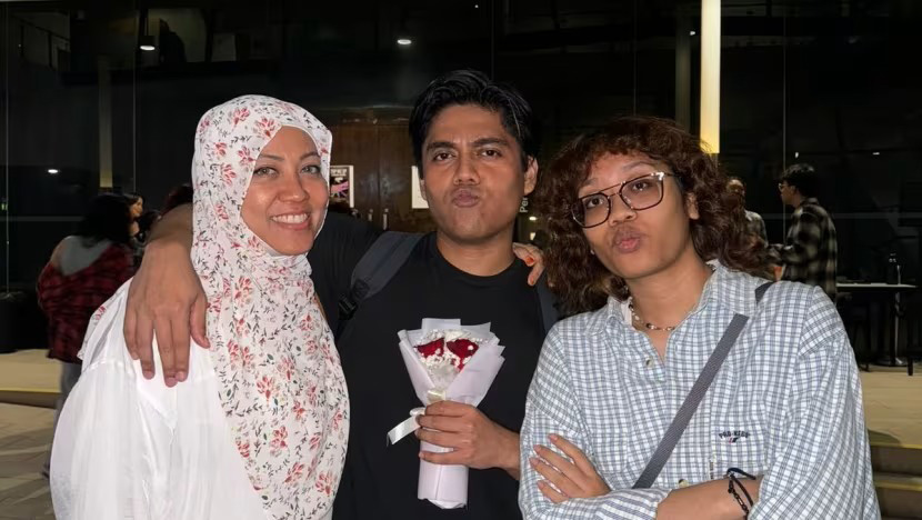 Aqil Fitri with his mother and sister after the performance. (Image: Aqil Fitri)